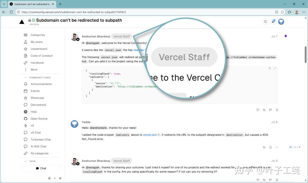 一说用户社区,感觉好像是用户之间的互助平台。实际上,社区里几乎所有的贴子都是由 Vercel 的员工在回复。我的个人网站托管在 Vercel 上,时不时就会遇到搞不定的地方。无论通过是以前的网页表单还是现在的自有社区,几乎都能在第二天收到热情、专业的回复。对了,我是免费版用户。